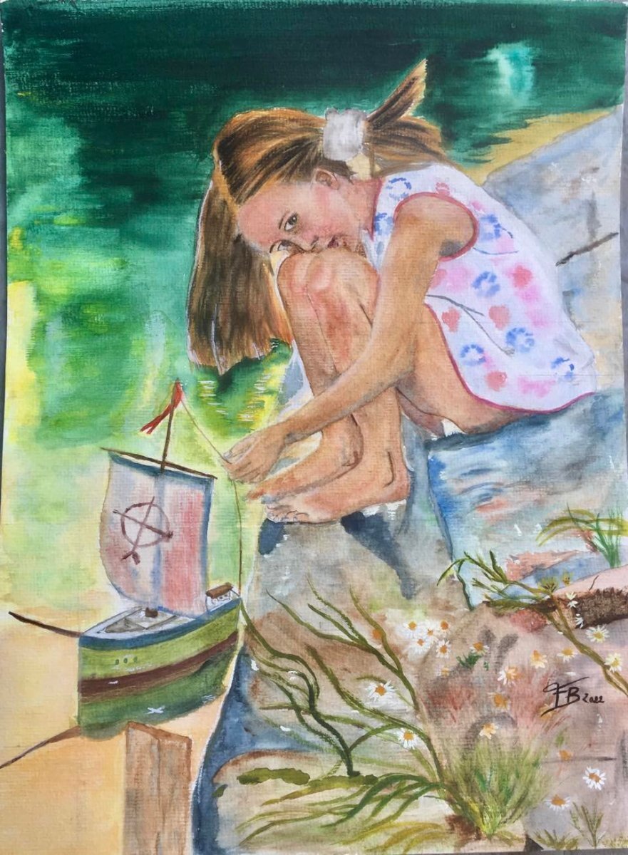 Aquarelles et poésie 1 : petite fille du bord de l'eau