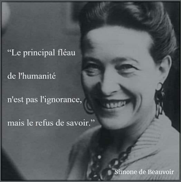 Photo Internet - citation attribuée à Simone de Beauvoir qui pourrait aussi venir d'Epictète. Source: https://www.guichetdusavoir.org/question/voir/65997