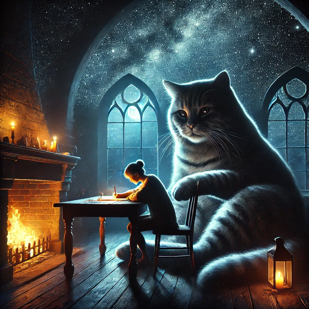 Un chat protecteur et câlin dans une nuit aux yeux d'étoiles, une jolie poésie !